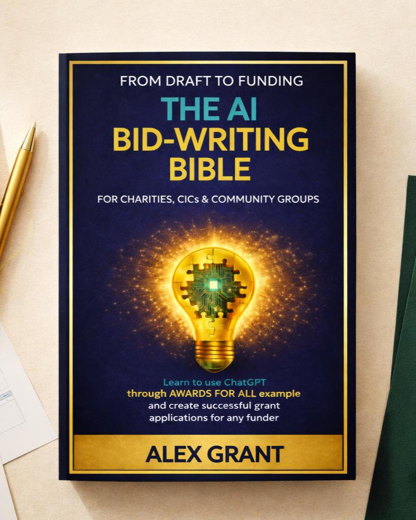 The AI Bid-Writing Bible brings this way of working into a single place. It is not a collection of templates you fill in and forget. It is a system for thinking. For designing. For writing in a way that leaves a clear trail from problem to solution to change.The chapters work through each stage methodically. Getting ready. Understanding the funder. Prompting AI so it helps rather than confuses. Building the application section by section. Creating a budget that holds together. Making final checks before you submit.The aim is not to make you dependent on a book or a tool. The aim is to give you a way of working that you can carry into any application, for any funder, for as long as you are doing this work.