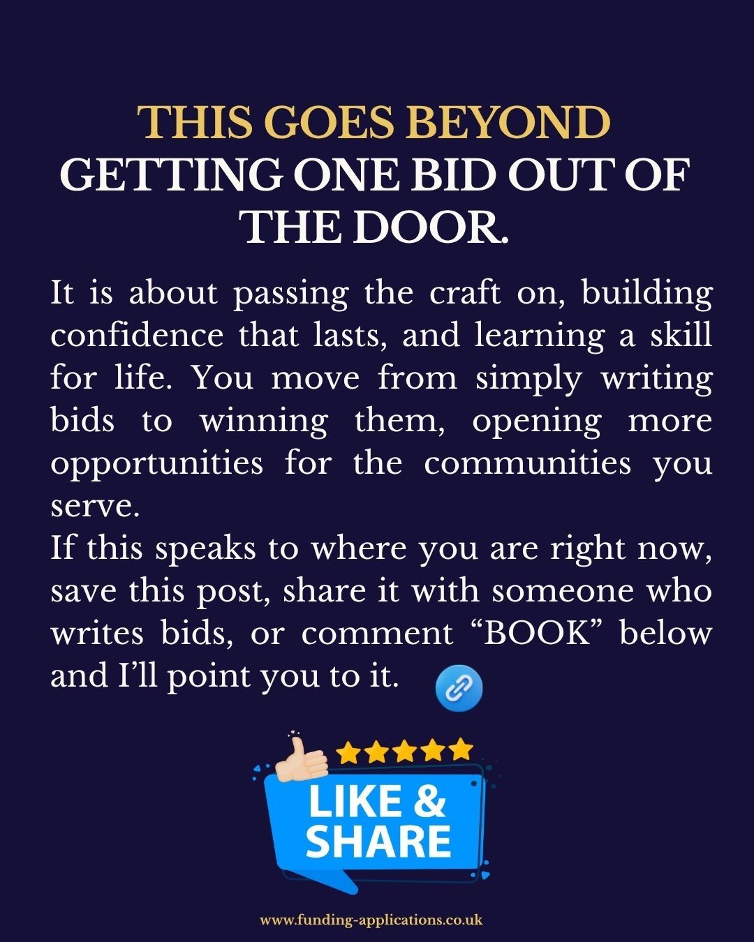 The AI Bid-Writing Bible brings this way of working into a single place. It is not a collection of templates you fill in and forget. It is a system for thinking. For designing. For writing in a way that leaves a clear trail from problem to solution to change.The chapters work through each stage methodically. Getting ready. Understanding the funder. Prompting AI so it helps rather than confuses. Building the application section by section. Creating a budget that holds together. Making final checks before you submit.The aim is not to make you dependent on a book or a tool. The aim is to give you a way of working that you can carry into any application, for any funder, for as long as you are doing this work.