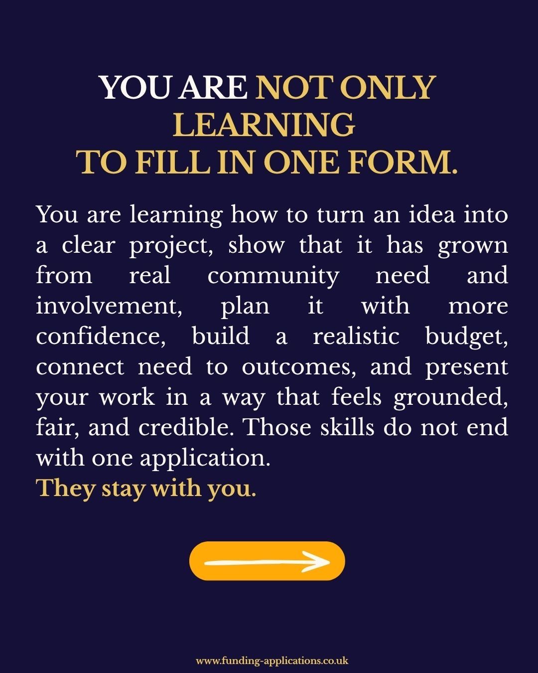 Community organisations are often the closest to social need and the furthest from funding clarity. The people who know what is needed most are often the ones for whom the form feels like it was written in another language. Complex criteria, shifting deadlines, administrative pressure. These things create barriers that have nothing to do with the quality of the work you do every day.This work exists to make those barriers lower. Not by promising shortcuts, but by offering clarity where there is usually confusion, and structure where there is usually noise. The goal is to help organisations like yours design projects that are fundable on their own terms, write applications that reflect the reality of your work, and eventually feel confident enough to do it without reaching for help.